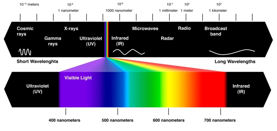 Το ορατό φάσμα του φωτός κυμαίνεται μεταξύ 390 και 760nm (μήκος κύματος σε νανόμετρα).  Εκατέρωθεν βρίσκονται οι περιοχές των υπεριωδών και υπέρυθρων ακτινών (Εικ.1).