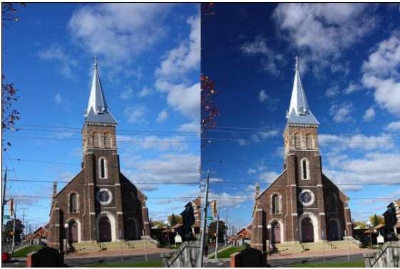 Διαφορά της όρασης μέσα από ένα πολωτικό φακό (δεξιά) και μέσα από έναν απλό φακό (αριστερά)